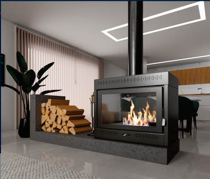 A Lareira Double Side é a união perfeita entre funcionalidade e design, proporcionando calor, elegância e praticidade para transformar seu espaço em um lugar ainda mais acolhedor.